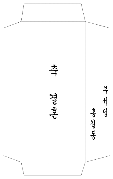 위에서도 이야기 했듯이, 한글 양식을 그대로 사용하면 조금 이상하고 불편할 수 있습니다. 그래서 원하는 대로 양식을 수정해서 사용을 하고 있습니다. 부서명과 이름도 입력할 수 있습니다. 그리고 '축 결혼'을 한글로 변경을 해서 사용을 하고 있습니다. 한자가 필요한 분들은 한자로 수정해서 사용을 해도 됩니다.