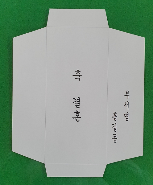 실제 출력해서 칼과 자로 자른 모습니다. 생각 보다 매우 깔끔합니다. 잘 접어서 풀 등을 이용해서 붙힌 후 사용을 하면 됩니다. 본인 스타일로 수정하여 사용한다면, 나만의 특색있는 축의금 봉투가 완성이 됩니다.