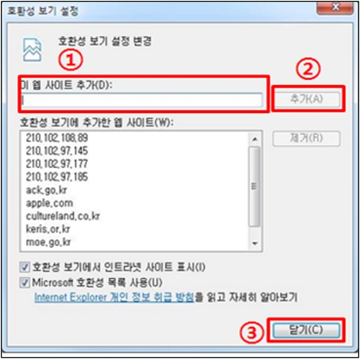 나이스 홈페이지 이용 불가 시 해결방법에 대해서 알아보았습니다. 위에도 이야기했듯이 이 방법은 다른 인터넷 사이트를 정상적으로 이용할 수 없을 때도 사용이 가능합니다. 호환성 보기 설정, 신뢰할 수 있는 사이트 정보에 이용하려는 홈페이지 주소를 위와 같은 방법으로 입력하면 됩니다.