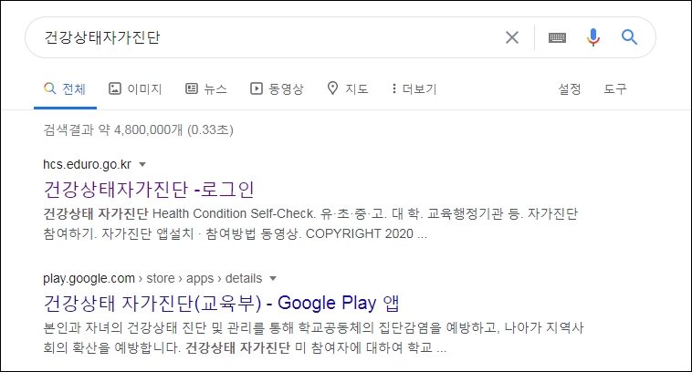 학생과 교직원은 건강상태 자가진단으로 등교 가능여부를 확인을 해야합니다.