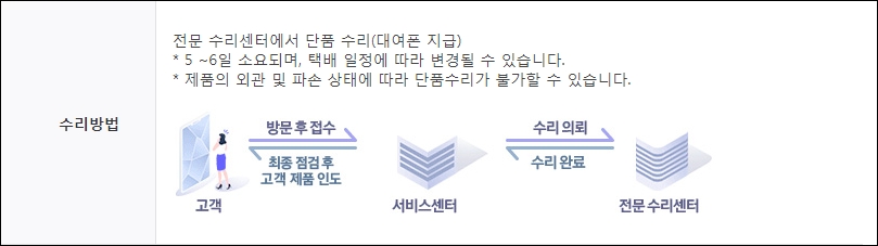 일체형으로 교체하는 경우 196,000원입니다. 만약 단품으로 수리한다면 비용은 139,000원입니다. 약57000원 정도가 절약이 됩니다. 다만, 단품수리의 경우는 전문수리센터에서 수리를 해야하기 때문에 5~6일 정도가 소요가 됩니다. 그동안은 대여폰은 지급 받아 사용을 해야 하는 불편함은 있습니다.