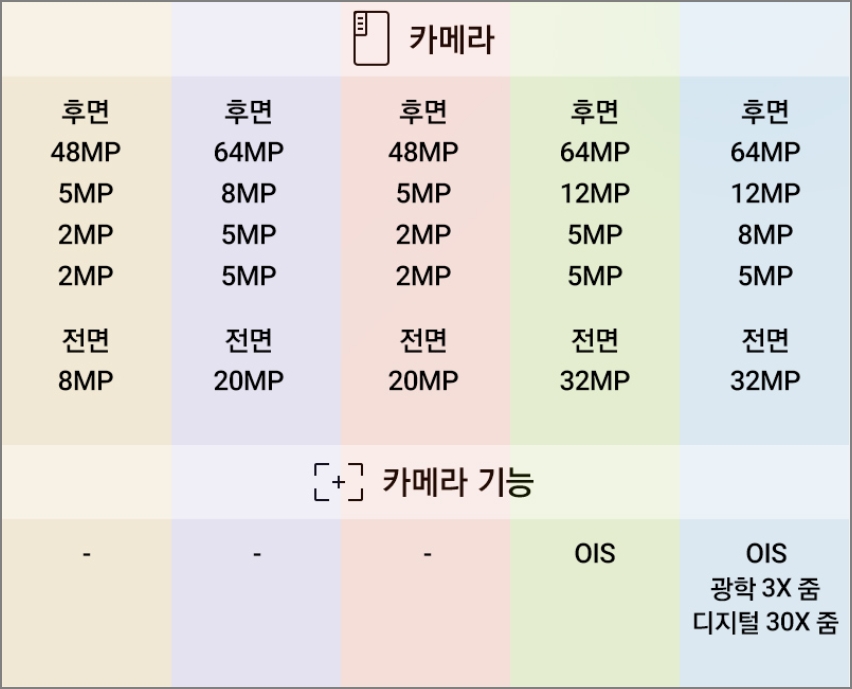 카메라 성능은 A72가 제일 좋습니다. 카메라 기능을 중요하게 생각을 한다면 A72를 고민해야 봐야 합니다.