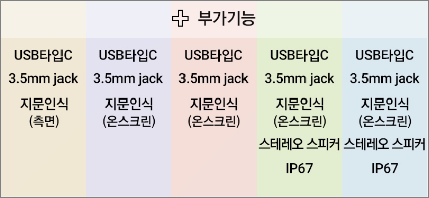 통신은 A12, A32, A72는 LTE입니다. A42, A52는 5G를 지원합니다.