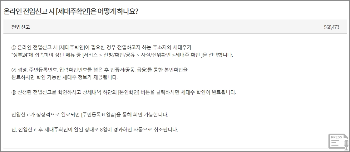 1. 온라인 전입신고 시 [세대주확인]은 어떻게 하나요?