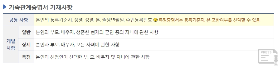 가족관계증명서(일반), 가족관계증명서(상세), 가족관계증명서(특정)입니다. 본인에게 맞는 용도로 발급을 받으면 됩니다.
