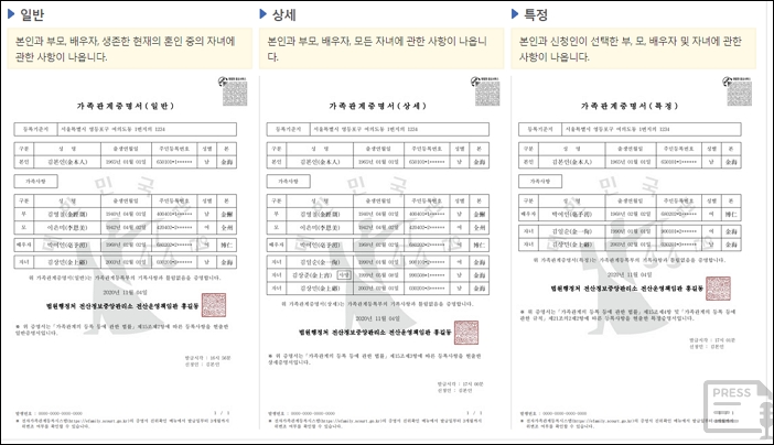 가족관계증명서 종류에 따라 기재되는 내용이 각각 차이가 있습니다. 가족관계증명서는 일반과 상세가 있습니다.