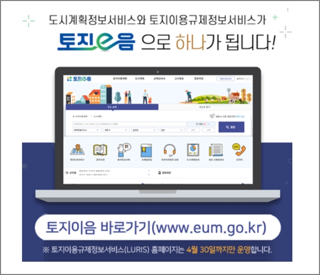 토지이용계획확인서는 토지이음에서 무료로 열람이 가능합니다. 기존에는 토지이용규제정보서비스(LURIS)에서 가능했는데 2021년 5월 1일부터는 도시계획정보와 토지이용계획정보를 한번에 볼 수 있는 토지이음 홈페이지에서 확인할 수 있습니다. www.eum.go.kr