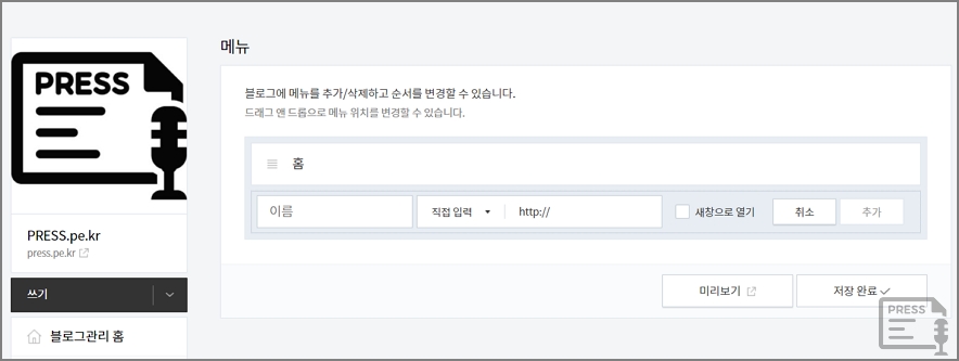 방명록, 카테고리 등 블로그에서 보이는 페이지에 내용이 꼭 있어야 한다는 뜻입니다.
