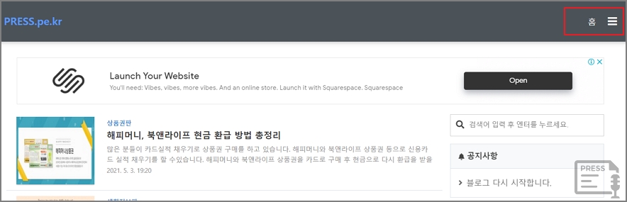 방명록, 카테고리 등 블로그에서 보이는 페이지에 내용이 꼭 있어야 한다는 뜻입니다.