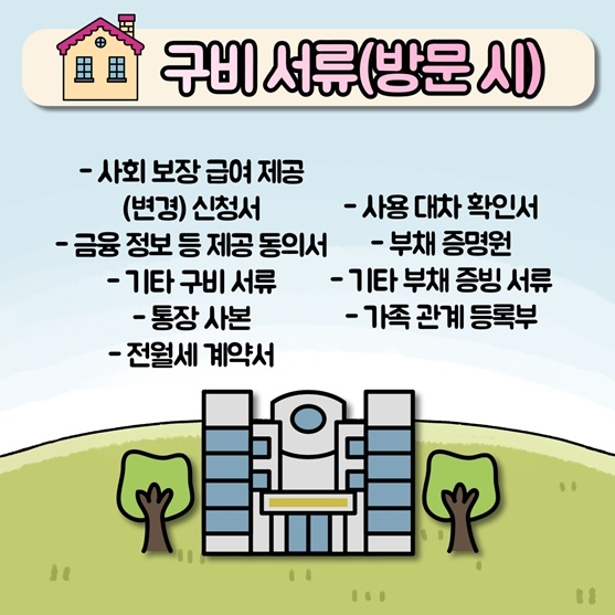 청년구거급여를 신청 시 제출서류 내용을 아래에서 확인하세요.