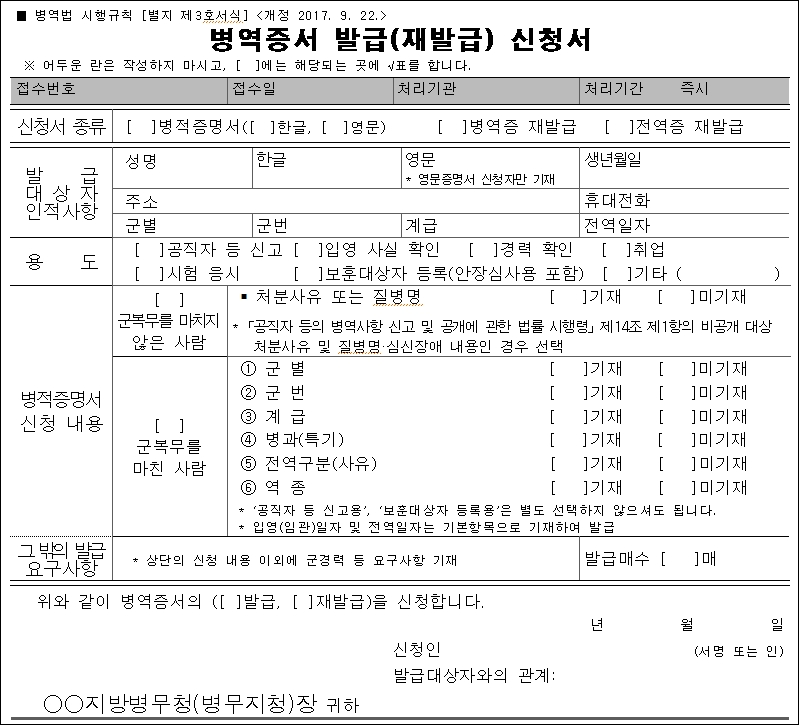 병적증명서 신청서 서식입니다. 아래 파일을 참고하세요.