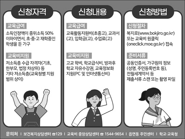 오늘은 교육급여 신청자격, 신청방법, 제출서류 등에 대해서 알아보도록 하겠습니다.