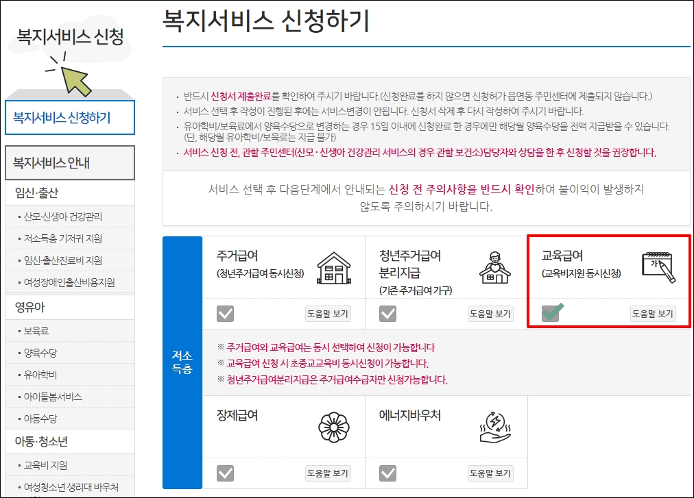 교육급여는 주민센터를 방문하거나 온라인으로 신청이 가능합니다.
