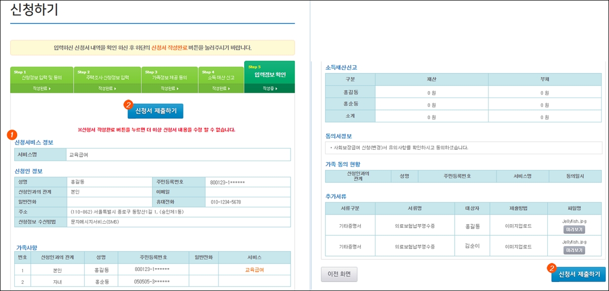 5. 가족정보 제공에 동의를 합니다. 금융정보 등 제공동의서를 읽고 동의함에 체크를 합니다. 신청인이 미성년 자녀에 대해서도 대신 동의할 수 있으며, 만 19세 이상의 가구원은 개별적으로 동의를 해야 합니다.