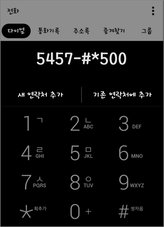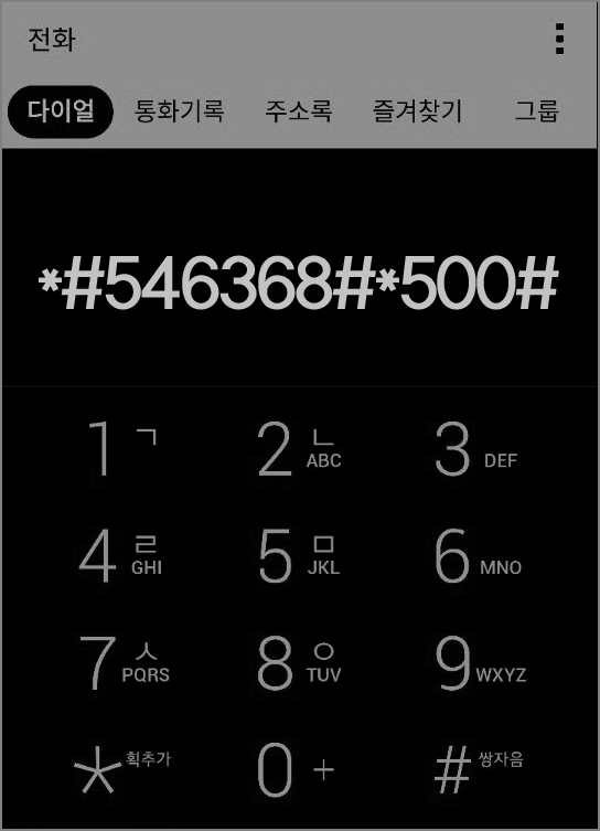 먼저 히든 메뉴로 진입을 해야 합니다. 히든 메뉴는 기본전화 앱에서 *#546368#*500# 입력하면 됩니다. 만약 다른 전화앱이라면 반드시 기본전화앱을 기본으로 설정을 해야 합니다. T전화와 같은 통신사 앱은 적용이 되지 않습니다.