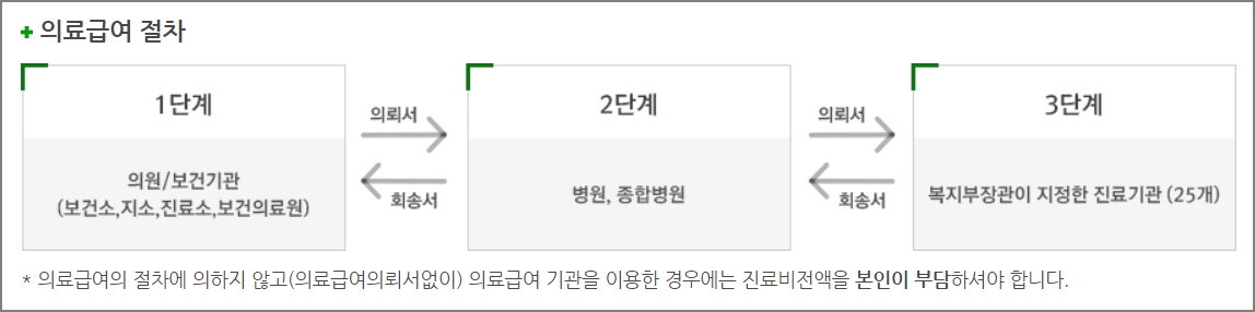 의료급여비용은 그 전부 또는 일부는 의료급여기금에서 부담을 합니다. 다만, 의료급여기금에서 일부를 부담하는 경우에는 그 나머지 비용은 아래 내용과 같이 본인이 부담을 해야 합니다.