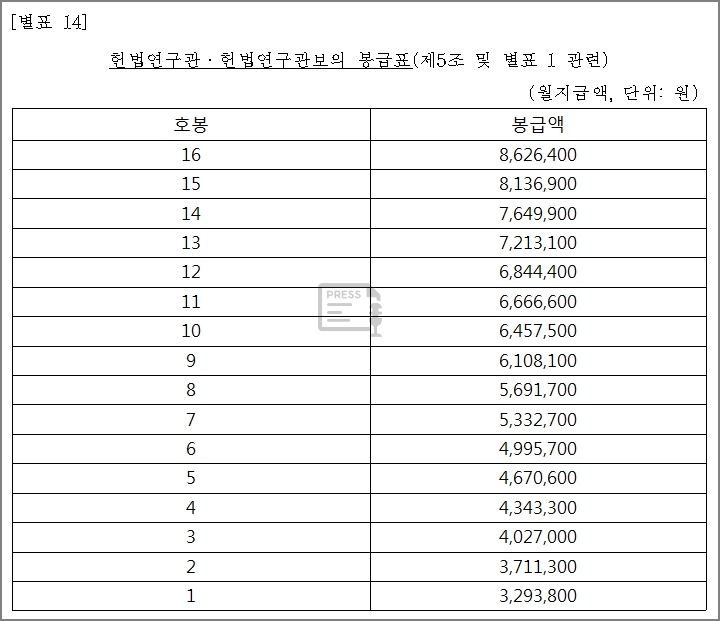 마지막으로, 헌법연구관, 헌법연구관보의 2022년 봉급표입니다. 1호봉부터 16호봉까지 있습니다. 헌법연구관의 경우는 참고로 1호봉이 1년이 아닙니다. 다른 공무원의 호봉과는 차이가 있습니다.