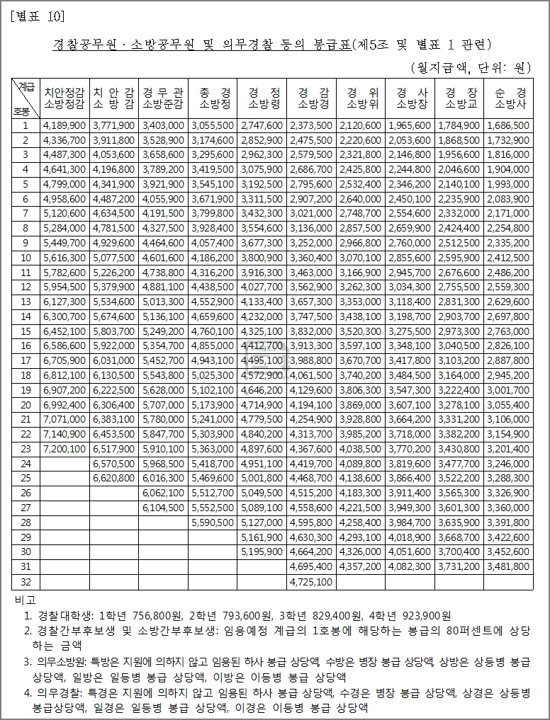 7. 2022년 경찰공무원, 소방공무원 봉급표