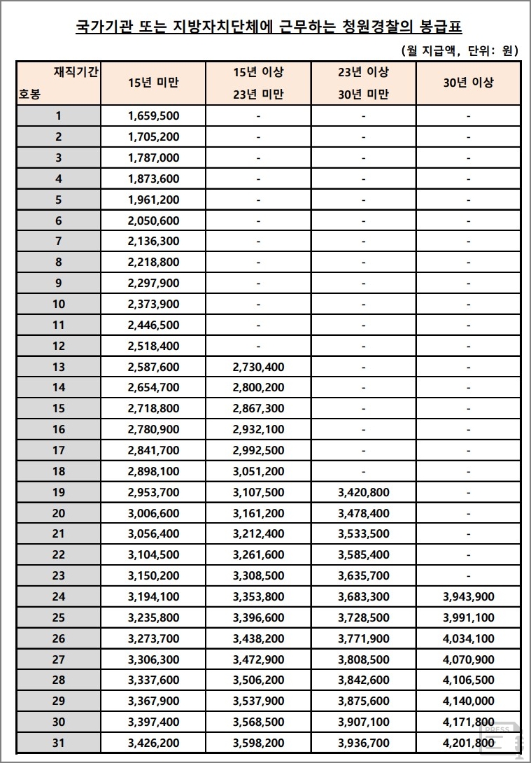 청원경찰에 관심 있는 분들은 봉급표를 참고하세요.