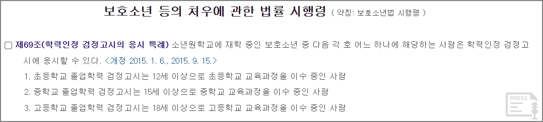 - 만 12세 이상, 초등학교를 졸업하지 못한 사람. 단, 초등학교 재학생은 응시할 수 없음.