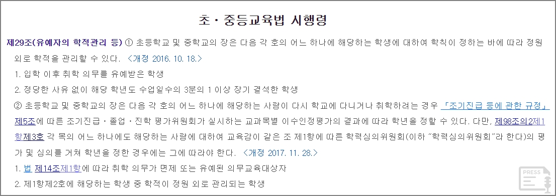 - 초등학교 재학생 중 만12세 이상으로 초·중등교육법시행령 제29조의 규정에 의하여 정원 외로 관리되는 사람.