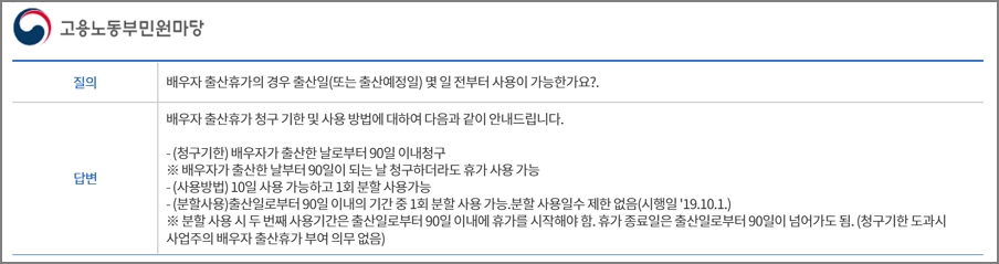오늘은 배우자 출산휴가 신청기간 및 급여 등에 대해서 알아보도록 하겠습니다.