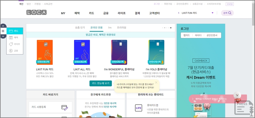 단기카드 대출서비스는