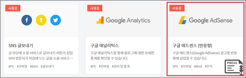 우선, 스킨 html을 수정하지 않아도 되어서 매우 간편합니다. 그리고 더 중요한 것은 나중에 스킨을 변경하더라도 광고배치는 변경이 되지 않아 그대로 적용이 됩니다.