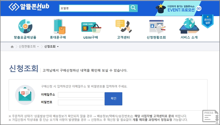 주문처리 상태가 '상품발송'인데 배송정보가 확인되지 않을 경우는 배송정보(택배사/송장번호)는 해당 사업자별 고객센터로 문의하세요. 가입신청서 작성내용 중 단순 오기재 사항이 발생했을 경우에는 신청취소 후 재신청 할 필요없이 개통 해피콜 과정에서 정정요청 가능합니다.