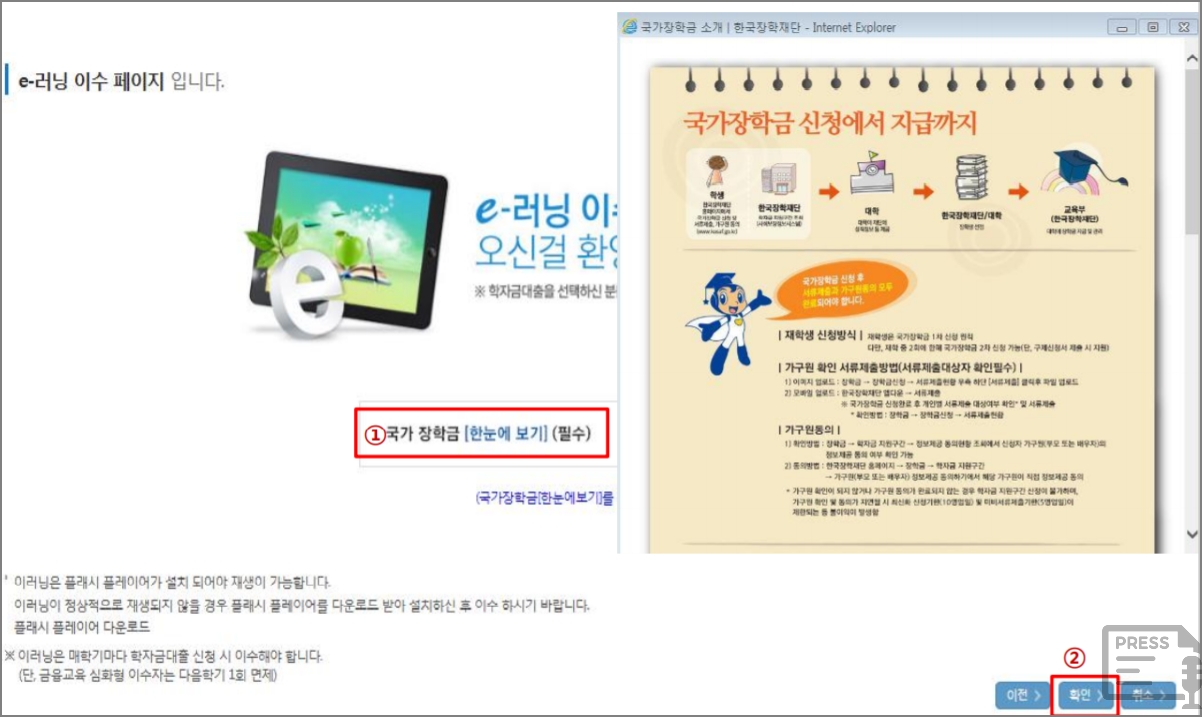 ▼ (7단계) 국가장학금 한눈에 보기 e-러닝 이수를 합니다.