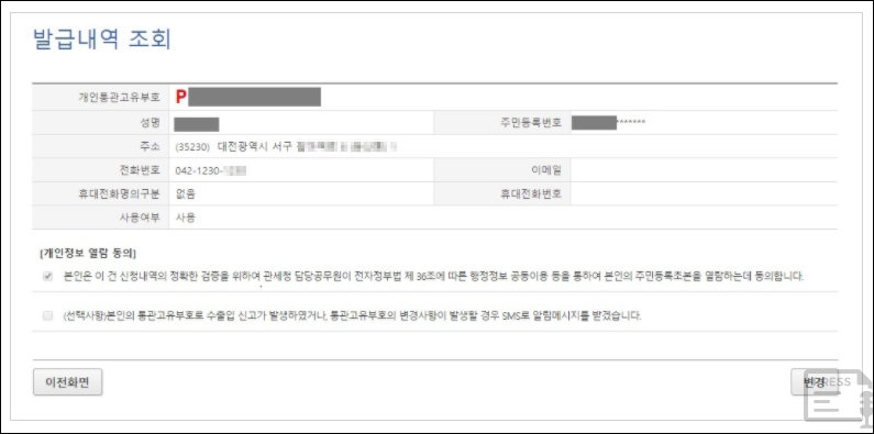 실명인증 및 본인인증 진행 후 개인통관고유부호 신청 후 즉시 발급하여 사용 가능합니다.