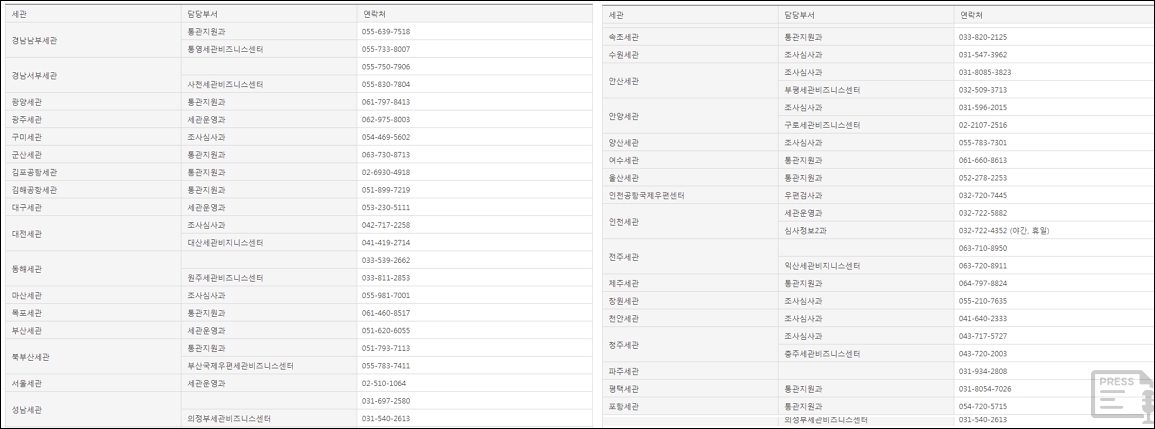 위 신청서를 작성후 제출하면 됩니다. 본부세관별 부호담당자 현황을 확인해보세요.