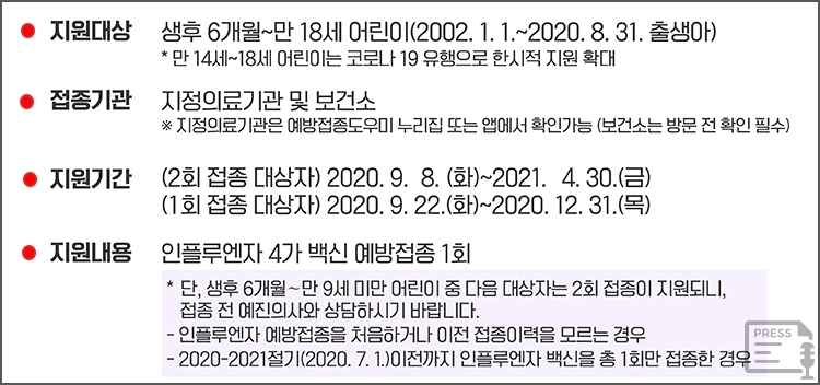 9월 8일, 화요일부터 2회 접종이 필요한 어린이 부터 시작을 합니다. 2번 받아야 하는 어린이의 경우는 먼저 맞아야 충분한 예방효과를 볼 수 있기 때문에 먼저 예방접종을 합니다. 2회 접종 대상자는 생후 6개월부터 만 9세 미만 어린이 중 인플루엔자 예방접종을 생애 처음으로 받거나, 2020년 7월 1일 이전까지 1번만 받은 어린이입니다.