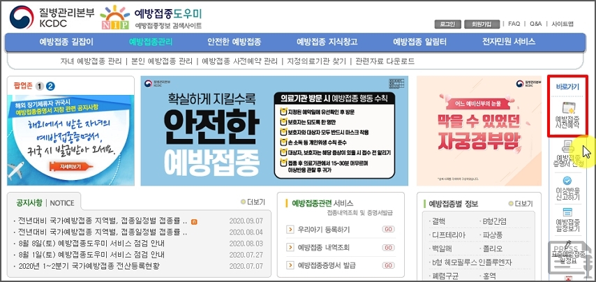 ▼ 예방접종 사전 예약하기