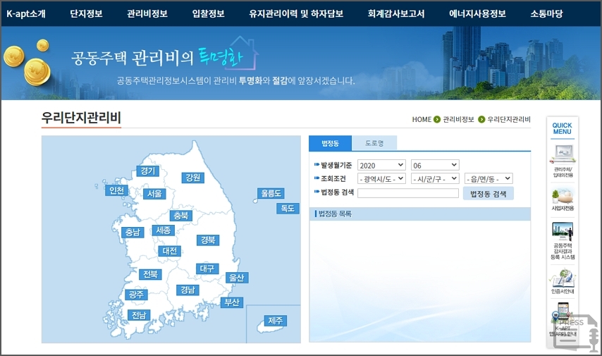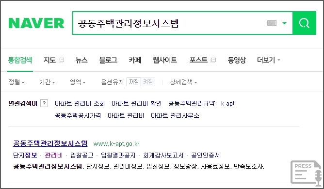 검색 창에서 공동주택관리정보시스템으로 검색을 하세요. 사이트에서는 아파트 관리비 조회 및 확인도 가능하며, 유지관리 이력, 입찰정보 등의 아파트 정보도 알 수가 있습니다. 아파트 관리비의 투명성을 확보하기 위하여 운영하고 있습니다. <사이트 바로가기>