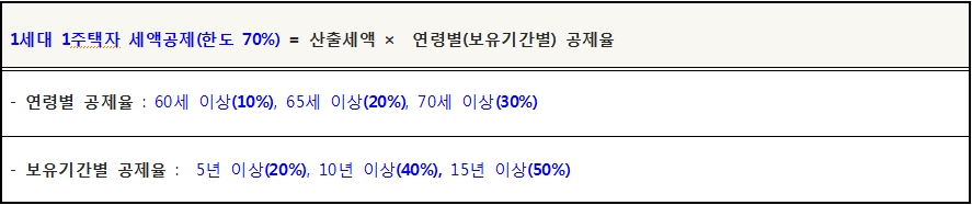 종부세는 연령별, 보유기간별에 따라 세액공제가 각각 됩니다. 60세 이상의 경우는 10%, 65세 이상은 20%, 70세 이상은 30%가 공제됩니다. 또한 보유기간이 5년 이상이면 20%, 10년 이상은 40%, 15년 이상은 50%입니다.