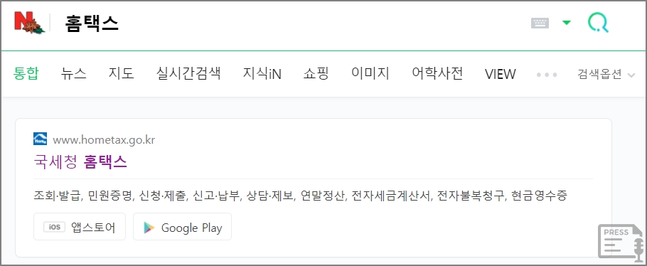 국세청 홈택스 홈페이지에서 잠자는 국세환급금 조회가 가능합니다. 네이버 등 검색창에서 홈택스를 검색하세요. 홈택스 홈페이지에 접속을 합니다. <▼ 홈택스 바로가기 클릭>