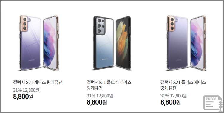 링케 퓨전 케이스입니다. 현재 가격도 할인도 하고 있어서 삼성 공식 정품 케이스보다 저렴하게 사용할 수 있습니다. 우선 가볍기 때문에 휴대하기가 좋습니다. 그리가 스트랩 구멍도 있어서 스트랩을 끼워서 사용도 가능합니다. 핸드폰의 디자인을 그대로 살릴 수 있어서 추천합니다. S21, S21울트라, S21플러스 케이스 모두 동일한 가격입니다. 아마도 제일 많이 쓰는 제품이 아닐까 합니다. 평가도 좋습니다. <링케 퓨전 상품평 확인하기>
