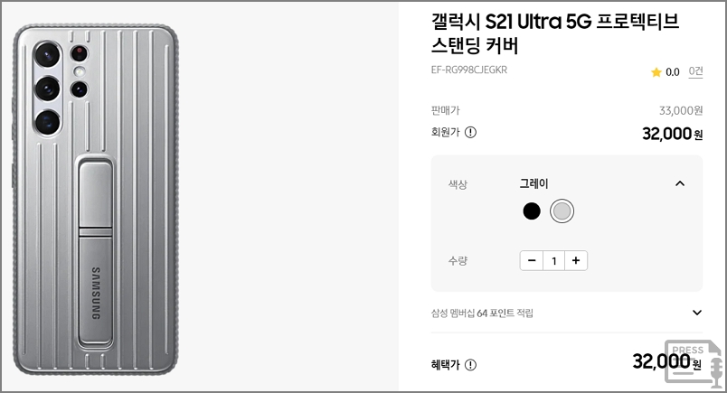 삼성 공식 홈페이지에서 판매하는 정품 커버 중 1개 입니다. 우선 핸드폰 보호 능력이 매우 좋습니다. 소중한 핸드폰을 보호하는데 가장 큰 중요하다면 추천합니다. 그리고 스탠딩 기능도 있어서 들고 있지 않아도 됩니다. 단점은 매우 무거운 편입니다. 휴대성은 좀 떨어진다고 생각하면 됩니다. 가격도 조금 비싼 편입니다.