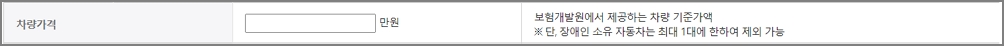 차량 가격은 보험개발원에서 제공하는 차량 기준가액으로 합니다. 단 장애인 소유 자동차는 최대 1대에 한하여 제외가 가능합니다. 장애인 소유 자동차가 2대 이상이라면 최고가액으로 공제하면 됩니다.