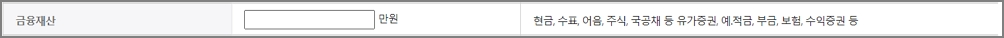 금융재산에는 현금, 수표, 어음, 주식, 국공채 등 유가증권, 예금 및 적금, 보험, 수익증권 등의 합계액을 적습니다.