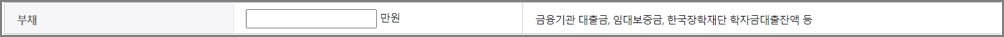 금융기관 대출금, 임대보증금, 한국장학재단 학자금대출잔액 등은 부채에 해당합니다.