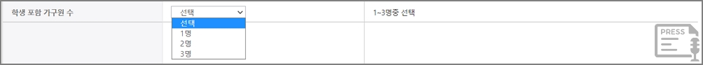 학생포함 가구원 수를 입력합니다. 1명~3명 사이에서 선택을 합니다.