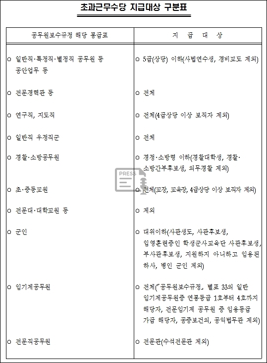 1. 공무원 초과근무수당 지급대상