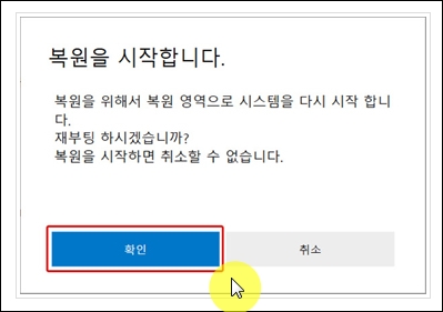복원을 위해서 복원 영역으로 시스템을 다시 시작하게 됩니다.