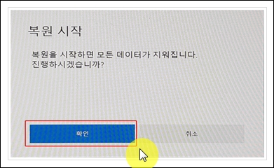4. '복원을 시작합니다' 창이 뜨면 '확인'을 클릭하세요.