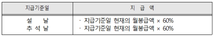 명절휴가비 지급기준일은 설날과 추석날입니다.